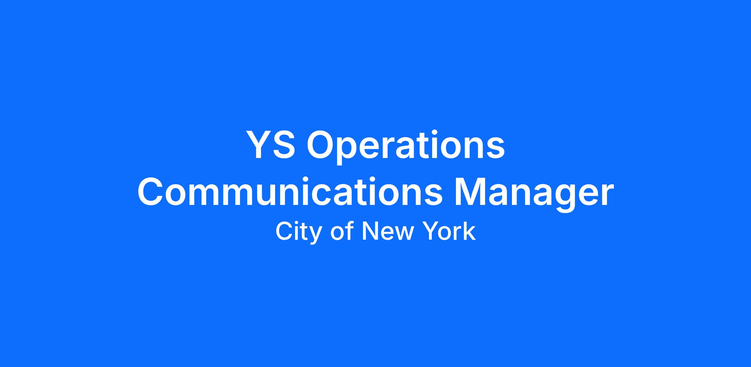 The New York City Department of Youth and Community Development (DYCD) support youth and community services through contracts with community-based organizations throughout New York City. DYCD Youth Services, encompassing such as BEACON, COMPASS, CORNERSTONE, RHY, SNL, and CACFP programming seeks to support community-based organizations high quality after school services through funding, monitoring, coaching, capacity, evaluation and advocacy. DYCD Youth Services is seeking a communications Manager to join the Youth Services Operations Team.