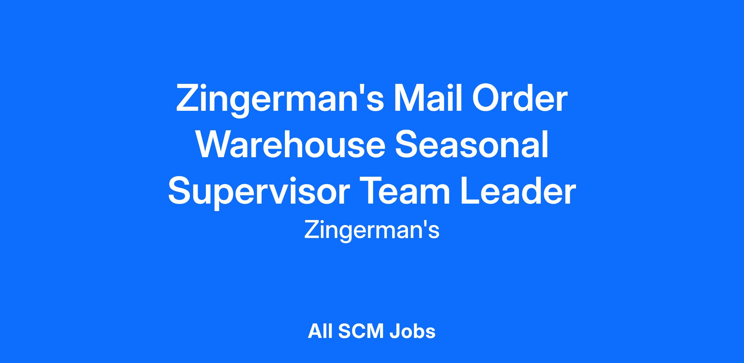 ZINGERMAN’S MAIL ORDER WAREHOUSE SEASONAL SUPERVISOR TEAM LEADER